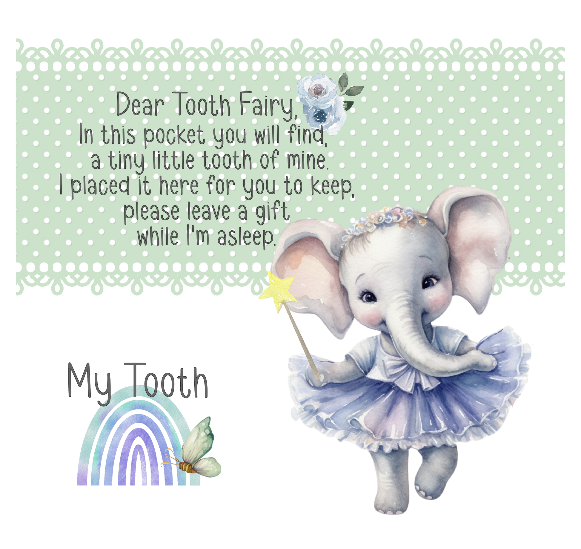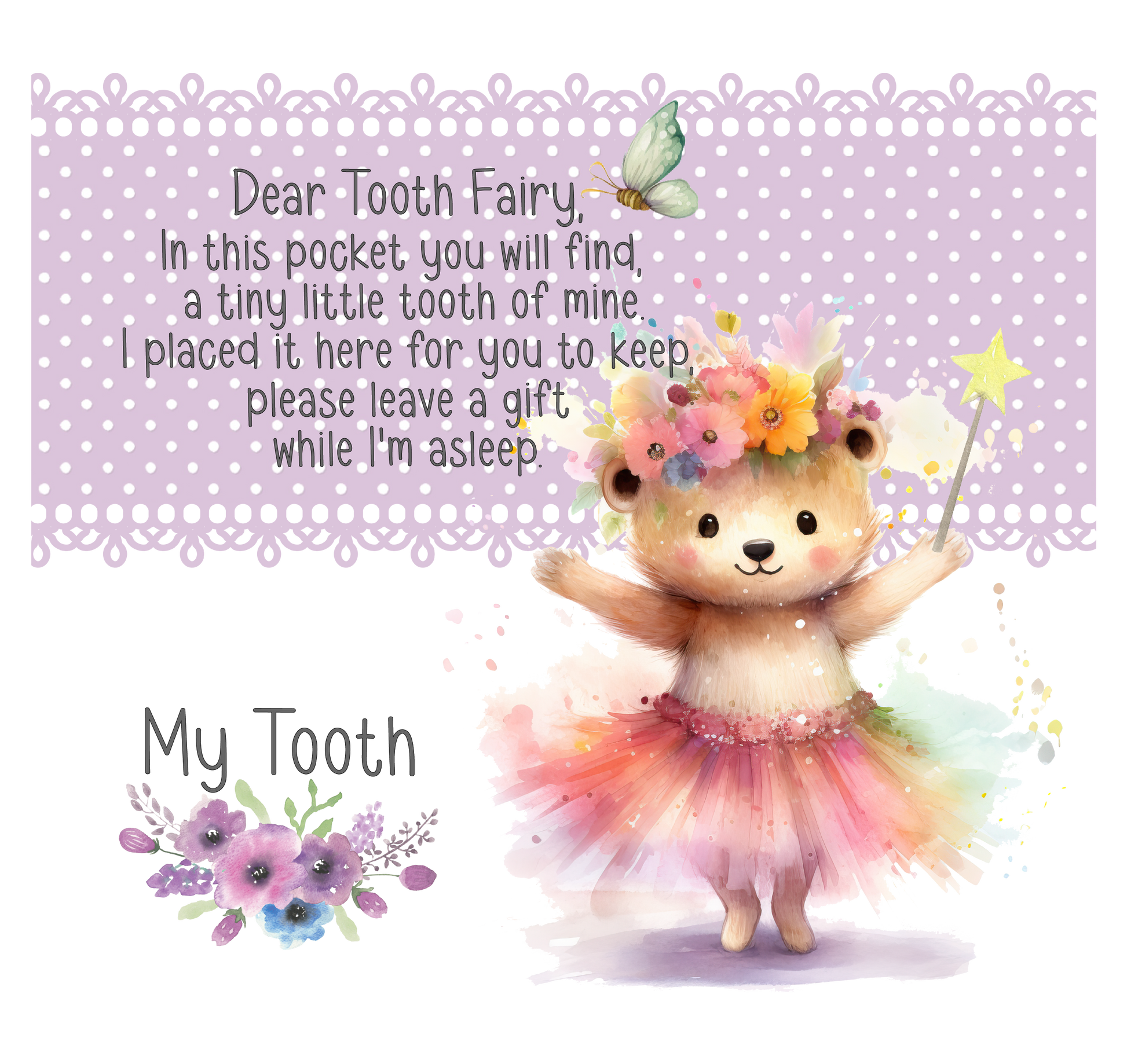 • Front pocket for the tooth or a note from the Tooth Fairy